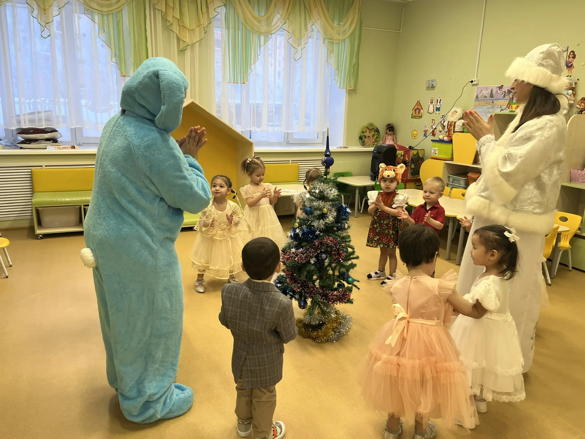 Новый год – время исполнения заветных желаний, и для малышей ожидание новогоднего праздника связано с предвкушением волшебства от встречи с Дедом Морозом и Снегурочкой. Дети вместе с ними пели, танцевали, участвовали в весёлых играх и хороводах.
